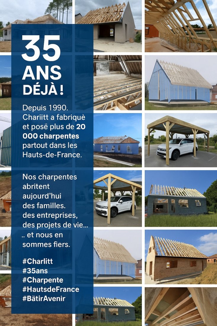 Derrière chaque charpente fabriquée, il y a une histoire : celle d’une famille qui construit son foyer, d’un professionnel qui développe son activité, d’un lieu qui prend vie. Nous sommes fiers d’avoir accompagné tant de projets, en offrant une écoute attentive, des conseils d’expert et un accompagnement sur-mesure. Ces 35 années ne sont pas seulement un chiffre, mais la somme de toutes ces rencontres qui donnent du sens à notre métier de fabricant.